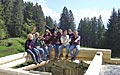 Einstamm-Holzbrückenbau im Teamwork im Vita-Parcours, Gemeinde Wartau